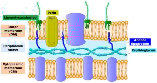 The presence in the OM of porin channels, which slow down molecular diffusion and limit the antibacterial substances diffusion, is considered the reason of the high resistance of Gram-negative bacteria towards common antiseptics and disinfectants in comparison to Gram-positive [].
