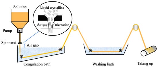 - Picken, S.J.; van der Zwaag, S.; Northolt, M.G. Molecular and macroscopic orientational order in aramid solutions: A model to explain the influence of some spinning parameters on the modulus of aramid yarns. Polymer 1992, 33, 2998–3006. [Google Scholar] [CrossRef]