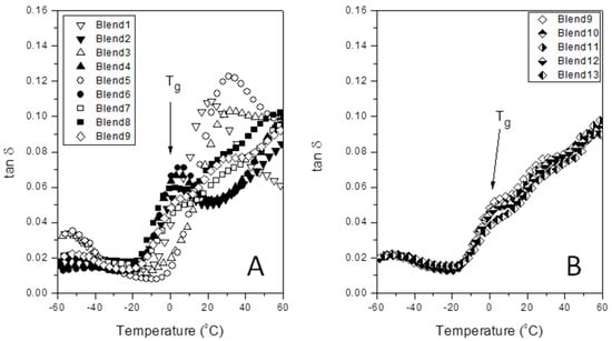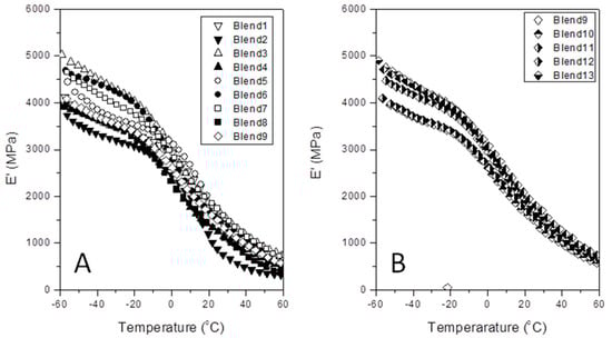 3.3. Influence of the Blend Composition in the Dynamic-Mechanical Behavior