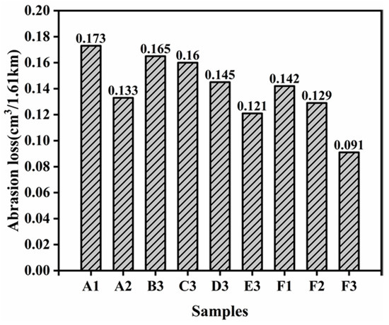 3.3.7. Abrasion Loss Properties of Silica/SSBR/BR Composites