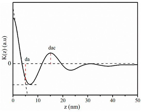 The sizes of crystal could be measured from the one-dimensional correlation function K(z), which was obtained by Equation (5) [32]: