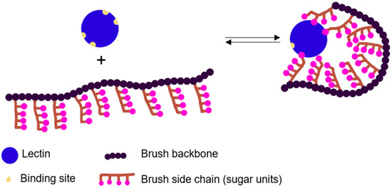 Schematic representation of the binding between a lectin and a glycopolymer brush chain by the multivalent effect.