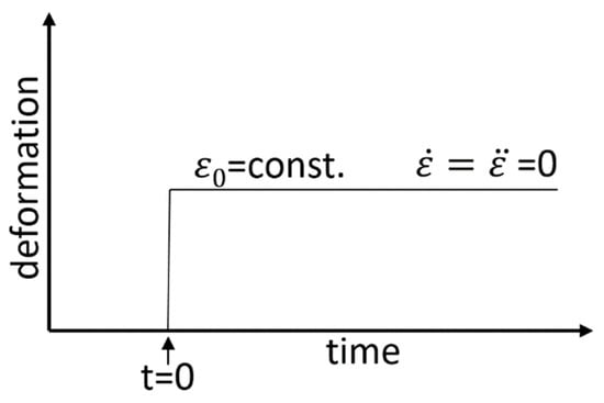 A typical relaxation experiment, according to Figure 10, applies a prompt, constant deformation to at time zero and the corresponding stress relaxation is measured.