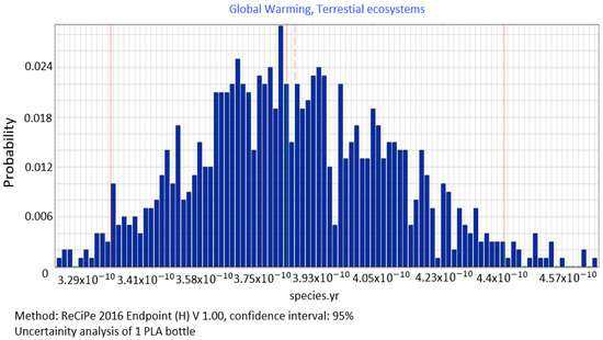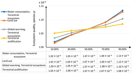 Figure 11. Results of the uncertainty analysis for the category of global warming and its influence on the ecosystem quality.