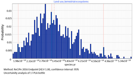 Figure 12. Results of the uncertainty analysis for the category of land use and its impact on the ecosystem quality.