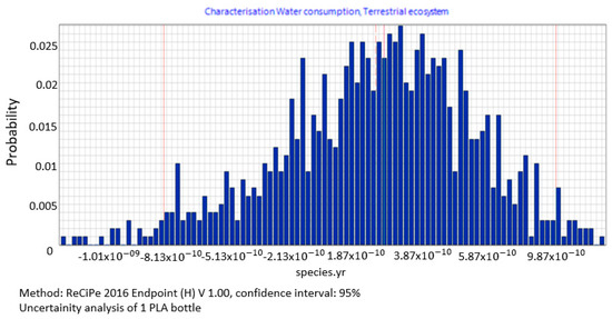 Figure 13. Results of the uncertainty analysis for the category of water consumption, terrestrial ecosystems and its impact on the ecosystem quality.