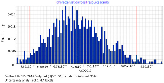 Figure 15. Results of the uncertainty analysis for the category of fossil resources scarcity and its impact on the resources availability.