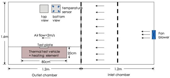 The forced convective heat transfer of the coated and bare plates was performed according to the standard of AMCA 210–07. Figure 1 depicts the experimental setup for conducting forced convection. The heat supply was set either 8 W or 16 W. The plate was placed horizontally under a flow rate of 2 m/s. Temperatures were measured at four points on the bottom surface of the plate.