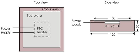 The natural convective heat transfer was performed by placing the plate horizontally as illustrated in Figure 2. The temperature was monitored until reaching steady state.