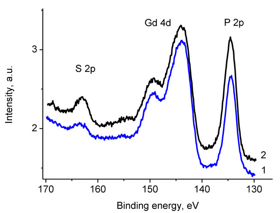 The Gd 3d photoelectron spectra of samples Pt/1′ (1) and 2 (2).
