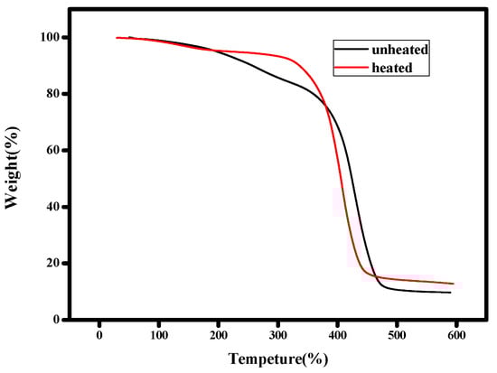 TGA curves of the before after 70 °C 3h heat treatment films.