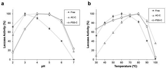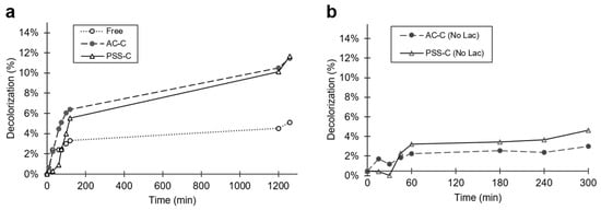 - Lu, L.; Zhao, M.; Wang, Y. Immobilization of laccase by alginate-chitosan microcapsules and its use in dye decolorization. World J. Microbiol. Biotechnol. 2007, 23, 159–166. [Google Scholar] [CrossRef]