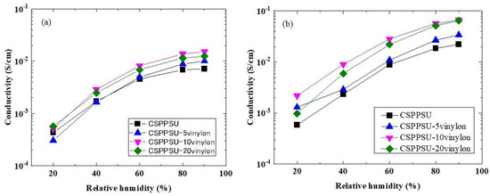 3.3. Proton Conductivities of the CSPPSU-vinylon Membranes