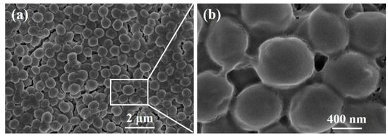 The morphologies of biofilms before and after debridement are shown in Figure 14 and Figure 15, respectively. The biofilm in Figure 14a is made up of spherical bacteria closely arranged to each other, forming a multi-layered stacked structure. Meanwhile, a slimy barrier and adhesion are clearly observed among bacterial colonies under a high magnification view in Figure 14b. The extracellular polysaccharide-wrapped bacterial colonies exhibit the typical features of biofilms [32], certifying a successful construction of an in vitro biofilm model.