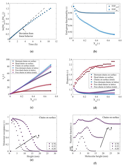 - Arraez, F.J.; Van Steenberge, P.H.M.; D’hooge, D.R. Conformational Distributions near and on the Substrate during Surface-Initiated Living Polymerization: A Lattice-Based Kinetic Monte Carlo Approach. Macromolecules 2020. [Google Scholar] [CrossRef]
