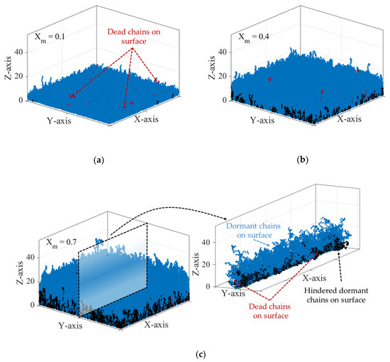 - Turgman-Cohen, S.; Genzer, J. Computer Simulation of Surface-Initiated Controlled Radical Polymerization: Effect of Free-Monomer Model on Brush Properties. Macromol. Theory Simul. 2019, 28, 1900033. [Google Scholar] [CrossRef]