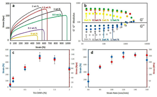 3.1. Tannic Acid Coated-Chitin Nanofiber-Assisted Hydrogels