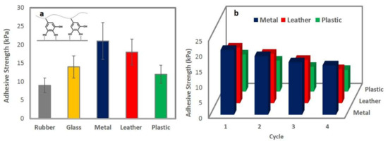 - Fan, H.; Wang, J.; Zhang, Q.; Jin, Z. Tannic acid-based multifunctional hydrogels with facile adjustable adhesion and cohesion contributed by polyphenol supramolecular chemistry. ACS Omega 2017, 2, 6668–6676. [Google Scholar] [CrossRef] [PubMed]