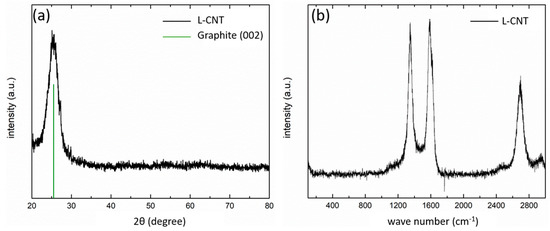 (a) XRD analysis and (b) Raman spectroscopy of original L-CNT.