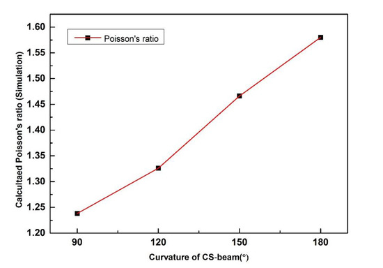 Calculated Poisson’s ratio (absolute value) of CS-based units with different CS-beam curvature based on simulation.