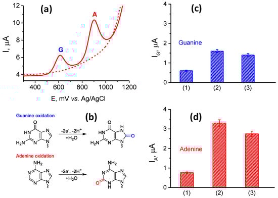 - Oliveira-Brett, A.M.; Piedade, J.A.P.; Silva, L.A.; Diculescu, V.C. Voltammetric determination of all DNA nucleotides. Anal. Bichem. 2004, 332, 321–329. [Google Scholar] [CrossRef] [PubMed]