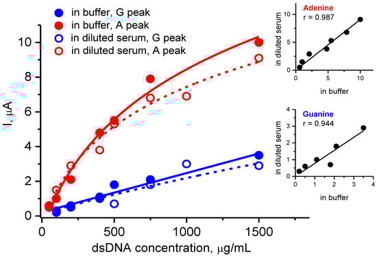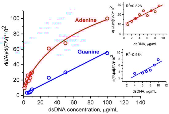 3.3.3. Electroanalysis of dsDNA at Low Concentrations