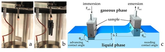 - Park, J.; Pasaogullari, U.; Bonville, L. Wettability measurements of irregular shapes with Wilhelmy plate method. Appl. Surf. Sci. 2018, 27, 273–280. [Google Scholar] [CrossRef]