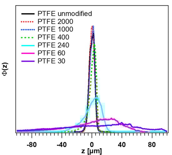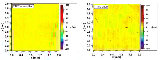 3.1. Topography and Height Distributions of the PTFE Surfaces