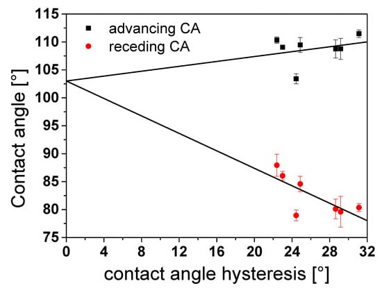 - Montes Ruiz-Cabello, F.J.; Rodríguez-Valverde, M.A.; Cabrerizo-Vilchez, M.A. Contact Angle Hysteresis on Polymer Surfaces: An Experimental Study. J. Adhes. Sci. Technol. 2011, 25, 2039–2049. [Google Scholar] [CrossRef]