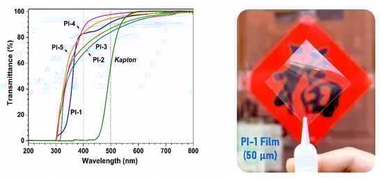 UV–Vis spectra of semi-alicyclic polyimide films and the appearance of PI-1 film.