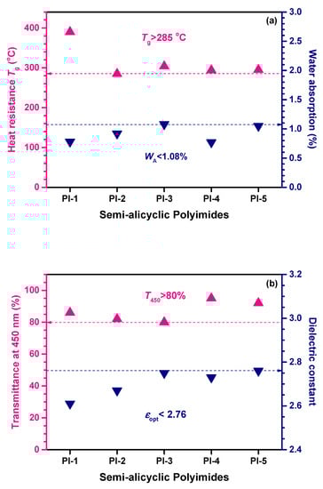 The performance of semi-alicyclic polyimides prepared in the present work.