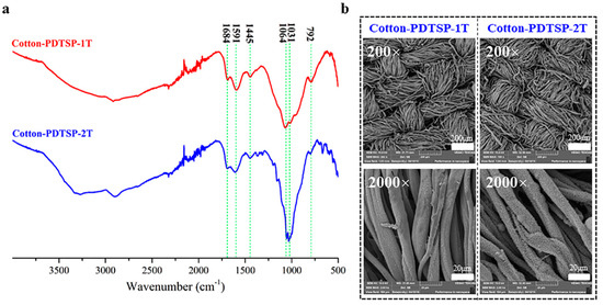 3.2. Preparation and Characterization of PDTSP-Coated Cotton Fabrics