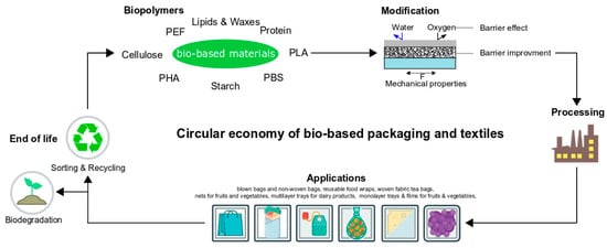 In most cases, the decrease in price, decrease in competition with food, but increase in complexity to use the source are associated with increases in the generation of feedstock. An ideal bio-based packaging material cycle is schematically illustrated in Figure 1.