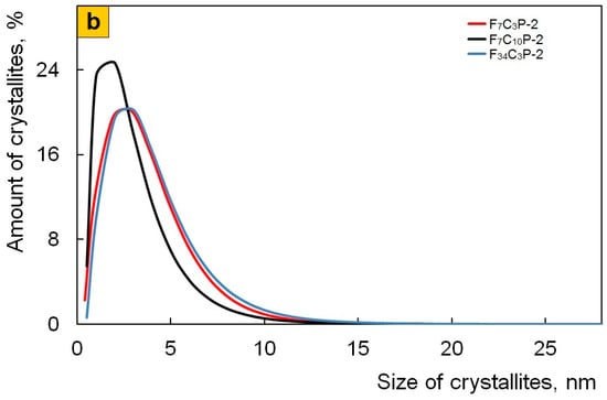 An X-ray diffraction study was performed in ambient atmosphere using a Difray-401 X-ray diffractometer (Scientific Instruments Joint Stock Company, Saint-Petersburg, Russia) with Bragg–Brentano focusing on CrKα radiation, λ = 0.229 nm. The results of X-ray diffraction analysis were used to calculate the size distribution of the coherent scattering regions of crystallites [48] in magnetic nanoparticles.