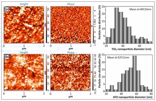 3.3. AFM Analysis of TiO2 and ATO Nnanoparticles’ Size