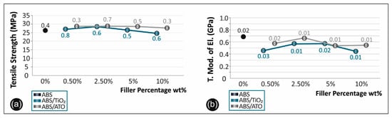 Mechanical Properties of 3D-Printed Acrylonitrile–Butadiene–Styrene TiO2 and ATO Nanocomposites