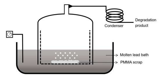 - Achilias, D.S. Chemical recycling of poly (methyl methacrylate) by pyrolysis. Potential use of the liquid fraction as a raw material for the reproduction of the polymer. Eur. Polym. J. 2007, 43, 2564–2575. [Google Scholar] [CrossRef]
