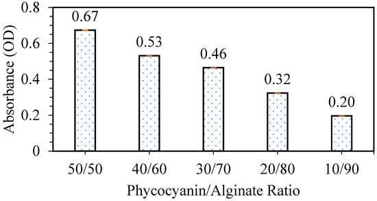 3.2.1. Optimization of Phycocyanin/Alginate Ratio