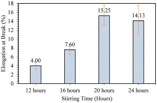 Elongation at break of patches prepared at different stirring times.