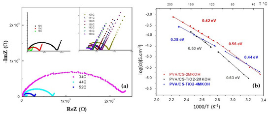 - Benítez, M.; Diosa, J.E.; Vargas, R.A. Effect of H3PO2 on the mechanical, thermal, and electrical properties of polymers based on poly (vinyl alcohol) (PVA) and chitosan (CS). Ionics 2018, 24, 2029–2034. [Google Scholar] [CrossRef]
