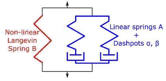 Equations (3) and (7) are solved simultaneously as a system of time-dependent differential equations to determine the stress in the and components. The stress response in the non-linear Langevin spring, , is defined using Arruda & Boyce 8-chain model [30] for the interpretation of molecular alignment: