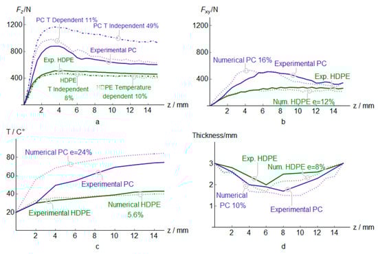- The method can simulate all thermoplastics, but low strength materials such as HDPE undergoes low Fxy forces, developing low material temperature during the forming process that reduces the influence of the proposed method.
