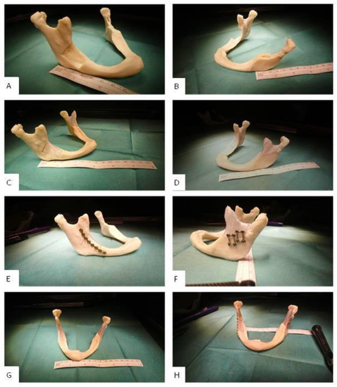 - Madsen, M.J.; McDaniel, C.A.; Haug, R.H. A biomechanical evaluation of plating techniques used for reconstructing mandibular symphysis/parasymphysis fractures. J. Oral Maxillofac. Surg. 2008, 66, 2012–2019. [Google Scholar] [CrossRef]