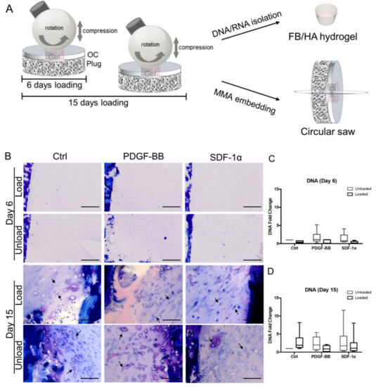 2.3. Ex Vivo Osteochondral Defect Model for Endogenous Cell Recruitment under Mechanical Loading