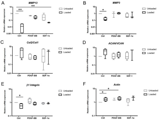 - Lee, C.R.; Grad, S.; MacLean, J.J.; Iatridis, J.C.; Alini, M. Effect of mechanical loading on mRNA levels of common endogenous controls in articular chondrocytes and intervertebral disk. Anal. Biochem. 2005, 341, 372–375. [Google Scholar] [CrossRef] [PubMed]