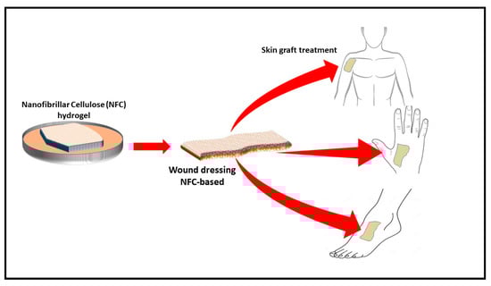 The process of wound healing requires normal cellular function, moisture control, and optimal oxygen permeability [56,88,116]. The effective surface area of filamentous biomaterials has been explored to develop nanoparticle-based cellulose. For example, a nanocellulose polymer was developed for cellular uptake. Similarly, a synthesised polymer was used as a folate receptor for the testing of cancer [117]. However, CNF aerogel can be incorporated with an antimicrobial material during the preparation process and can be used as a wound dressing material (Figure 8). Many plant extracts have been investigated for their antimicrobial activity. An evaluation of the effect of aqueous and alcoholic extracts of the peels of Punica granatum showed better activity than some of the common antibiotics. Similar materials can be incorporated in the aerogel to generate an antimicrobial aerogel for wound dressing [118]