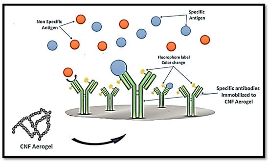 Schematic diagram of the potential use of CNF aerogel in the diagnosis of specific antigens.