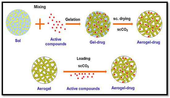 Fabrication process of drug delivery aerogel (cited from García-González et al. [122]. Copyright 2011. Reproduced with permission from Elsevier Ltd.