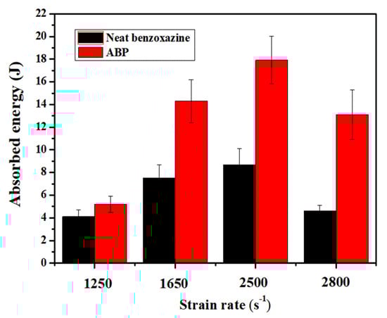 Absorbed energy of neat benzoxazine and ABP under different strain rates.