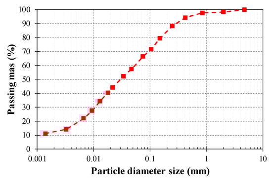 - ASTM D7928-17 Standard Test Method for Particle-Size Distribution (Gradation) of Fine-Grained Soils Using the Sedimentation (Hydrometer) Analysis, USA, 2017. Available online: https://www.astm.org/Standards/D7928.htm (accessed on 4 February 2020).